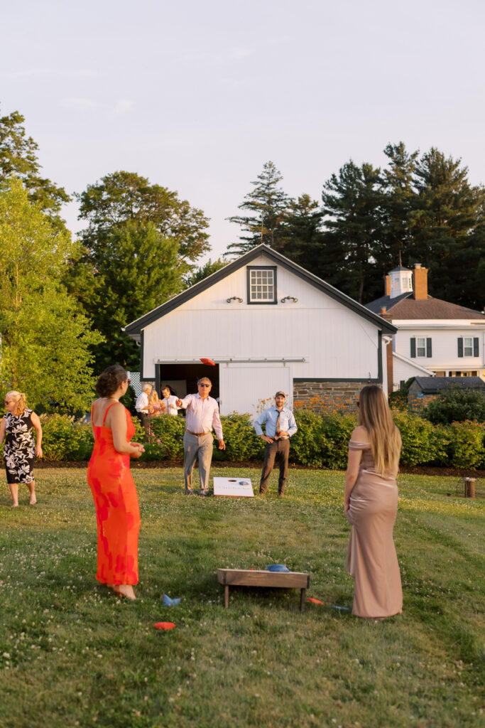 In summer, the estate truly opens up. Cocktail hours spill onto the lawn. Lawn games become part of the afternoon. Golden hour receptions glow across the hills.