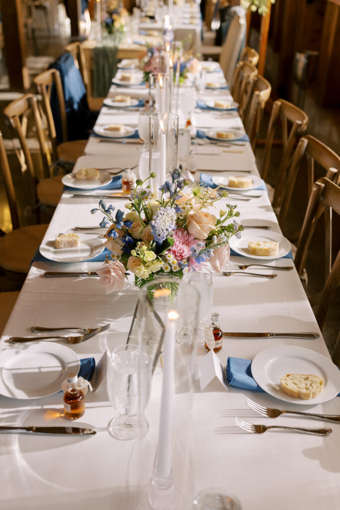 Fall styling often leans into layered textures, candlelight, and richer tones. Wood accents, seasonal florals, and warm lighting complement the estate beautifully.