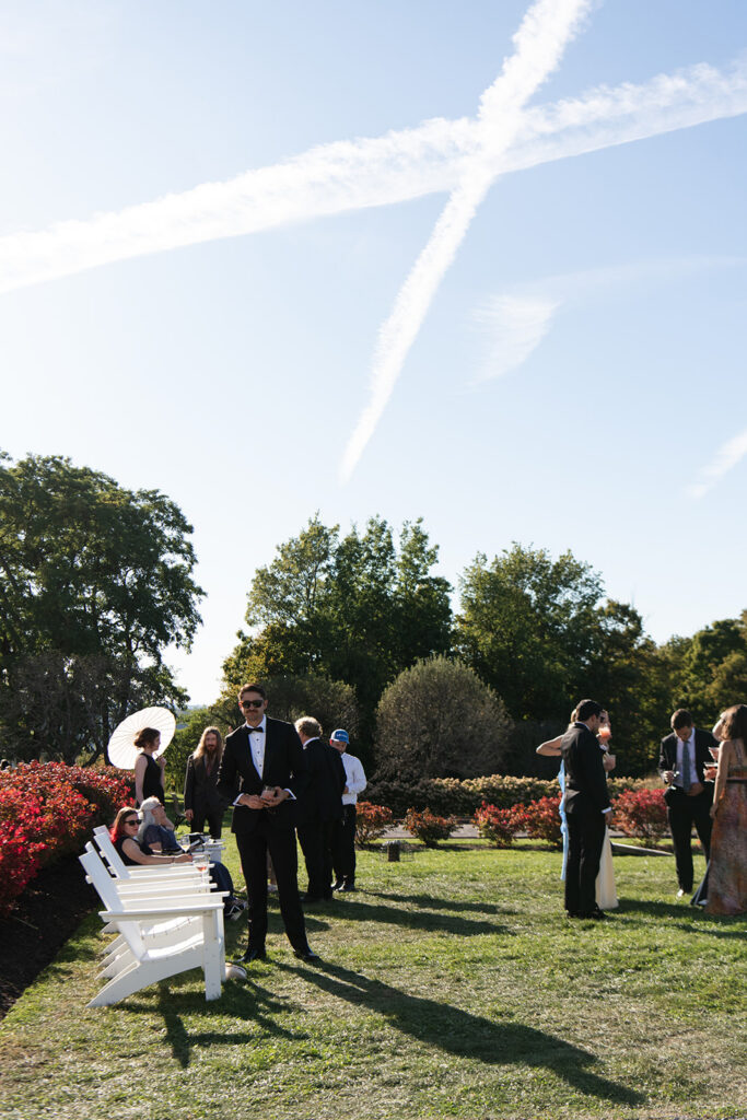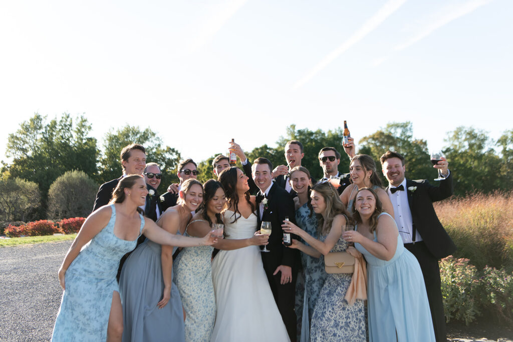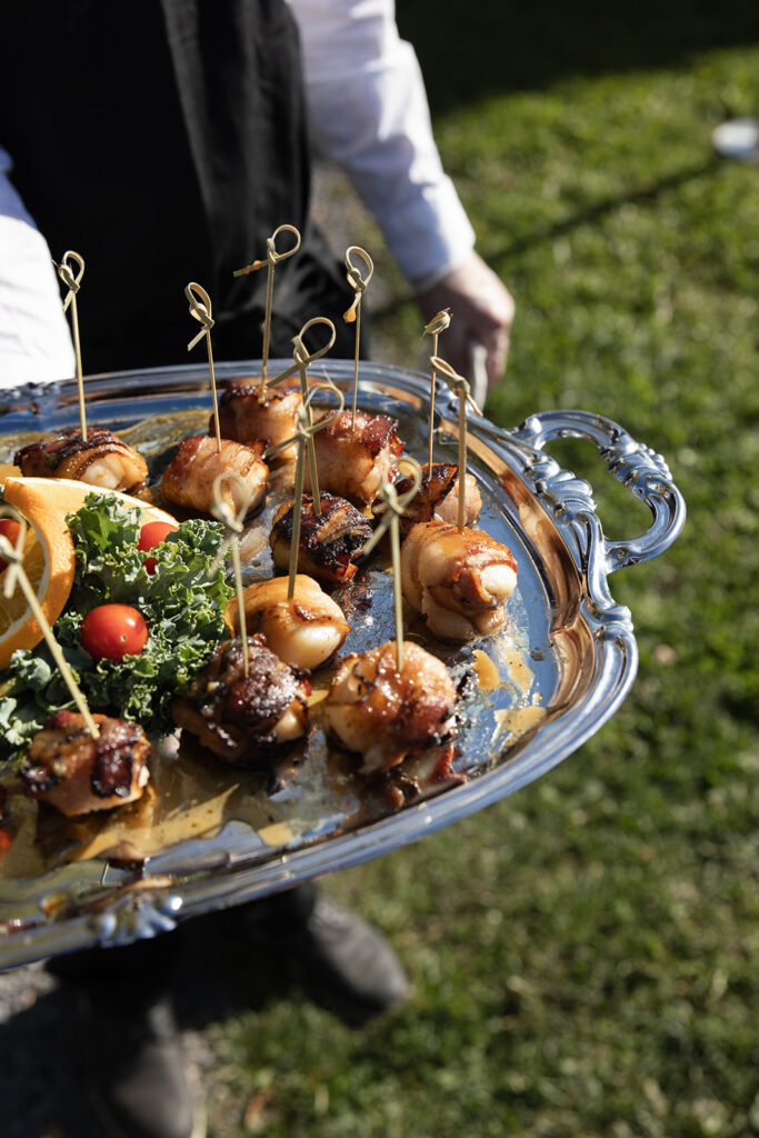 After the ceremony, guests naturally flowed into cocktail hour, moving between the lawn and the Belvedere Pavilion. Michael’s Hospitality served a selection of hors d’oeuvres as guests spread out, grabbed a drink, and settled into the afternoon. Some stayed close to the pavilion, while others wandered the property and took it all in.