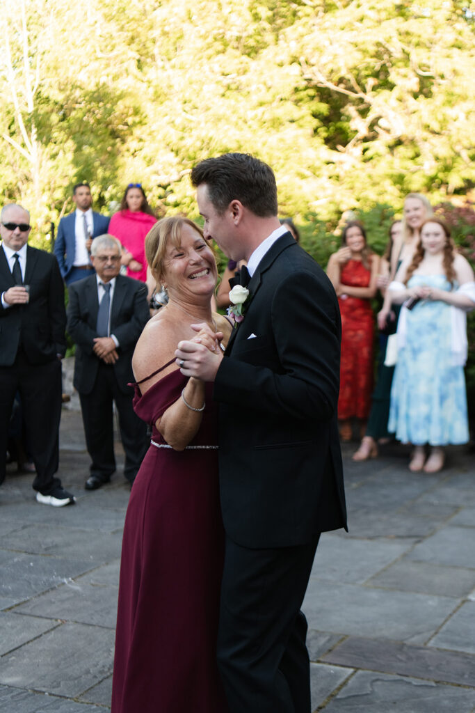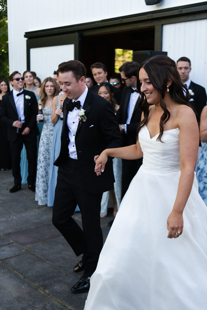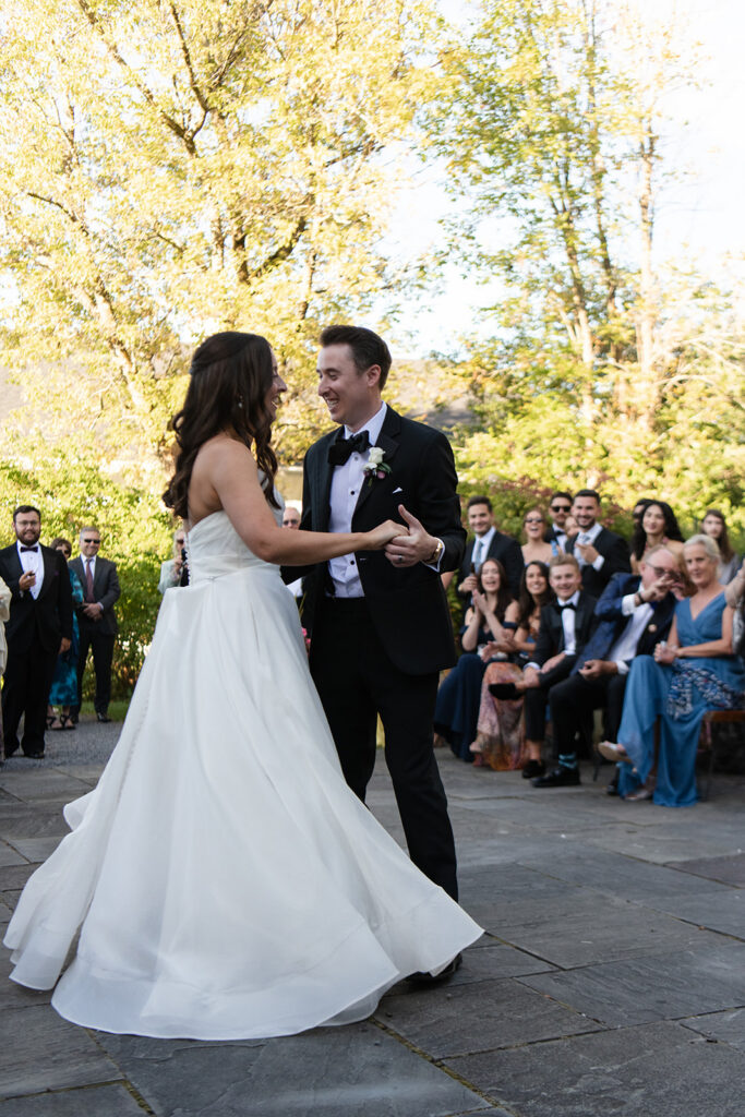 When it was time for the reception to begin, Hannah and Drew gathered with their guests on the Bluestone Patio just outside the barn for their first dances. They shared that moment together, then each took a turn with their parents, surrounded by everyone they love.