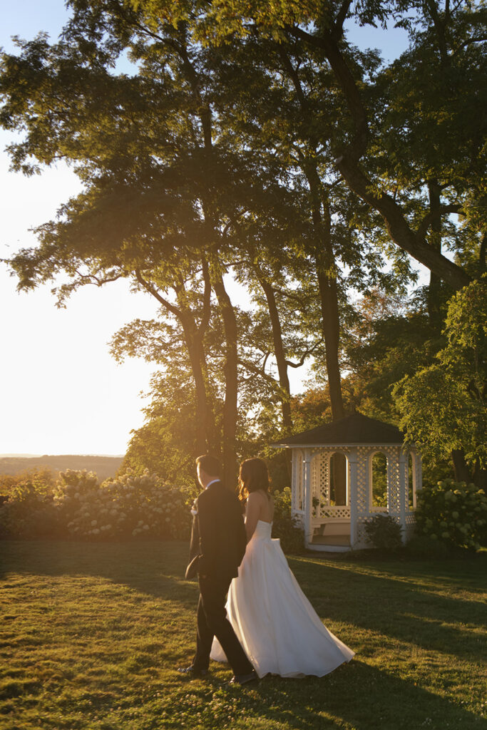 As guests settled into dinner, Hannah and Drew stepped away for a few quiet minutes together. They made their way toward the gazebo and around the barn for sunset photos with their brilliant photographer, Megan Putney. Taking advantage of that soft evening light is something we always recommend.