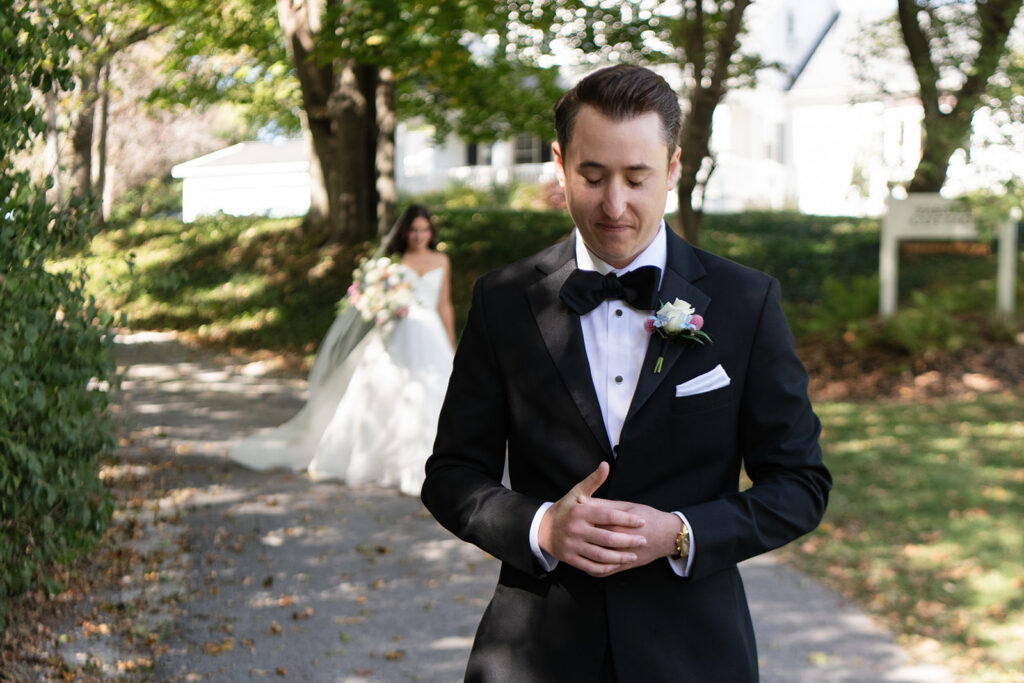 Before the ceremony began, Hannah and Drew met for their first look in a quiet spot near the Farmer’s Cottage. It felt tucked away from everything else, which is sometimes much needed on such a busy day.