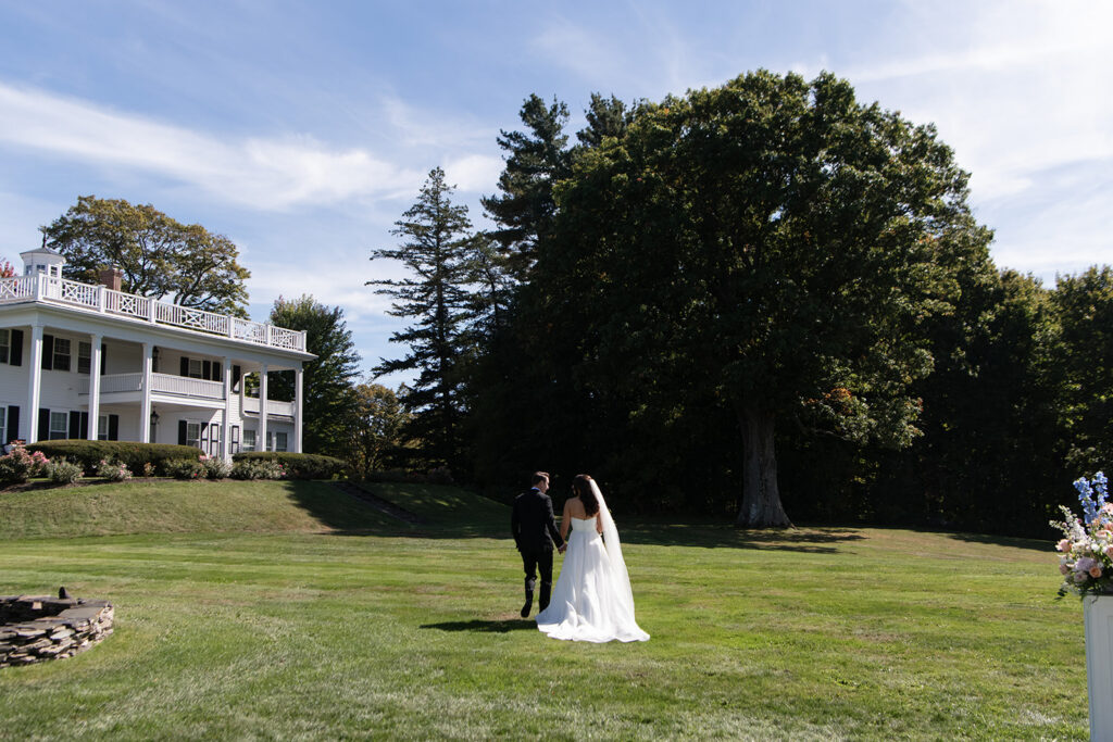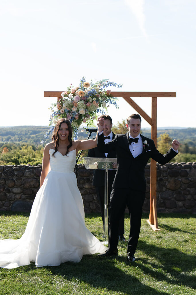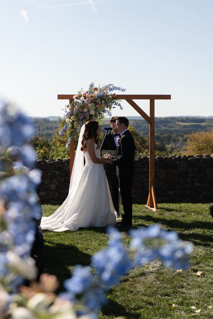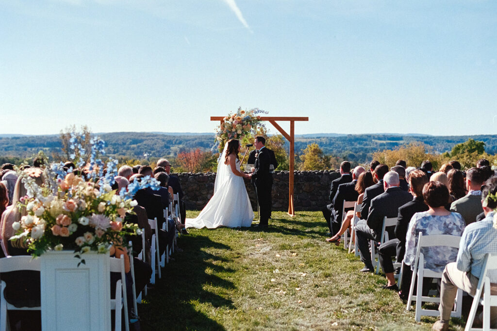 The ceremony took place at the Stone Wall, overlooking the rolling landscape of Upstate New York, with the estate standing tall in the background.