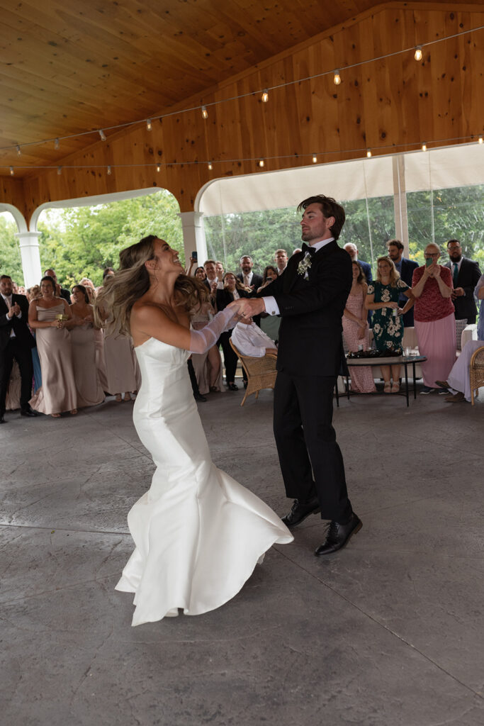 Later, Lexi and Keagan launched T-shirts into the crowd in an unforgettable surprise. They had printed their own faces on the shirts, and guests caught them like prized souvenirs. Moments like these remind us how a unique wedding venue allows couples to weave their personalities into every detail. We loved seeing The Architects’ Daughter vision come together across the estate