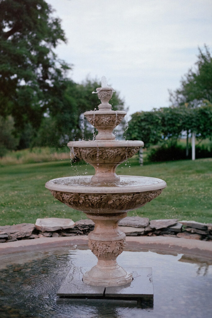 On Saturday, after a quiet morning of getting ready and exchanging private letters, Lexi and Keagan met under the Old Oak Tree to exchange vows. As one of our four ceremony options on the property, this one fit the bill perfectly for these two. The Old Oak Tree offers the best of all worlds. The tree itself as a timeless backdrop, the estate standing proud behind guests, the hills of Upstate New York in the distance, and our fountain completing the scene.
