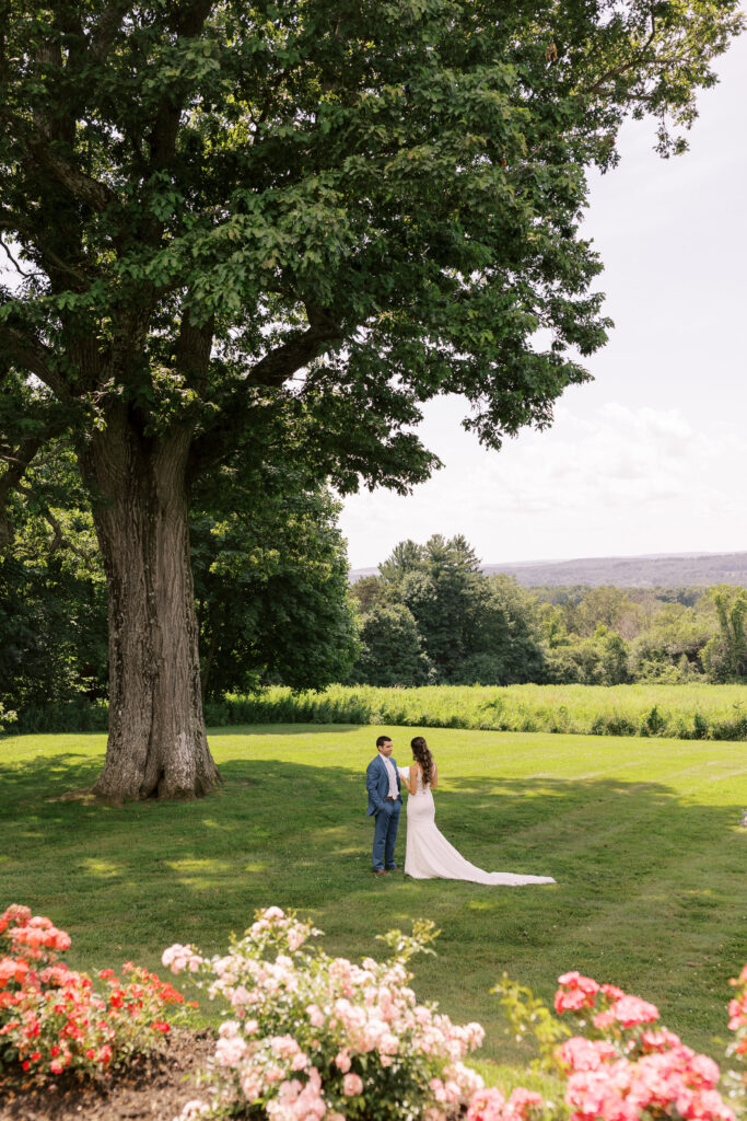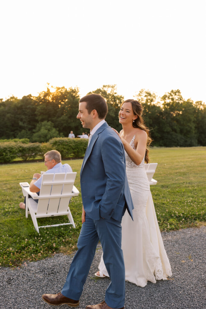 Before guests arrived, Liz and Sean met for a first look on the lawn near the Estate Porch. The setting felt quiet and private, giving them a moment to pause together before the celebration officially began.