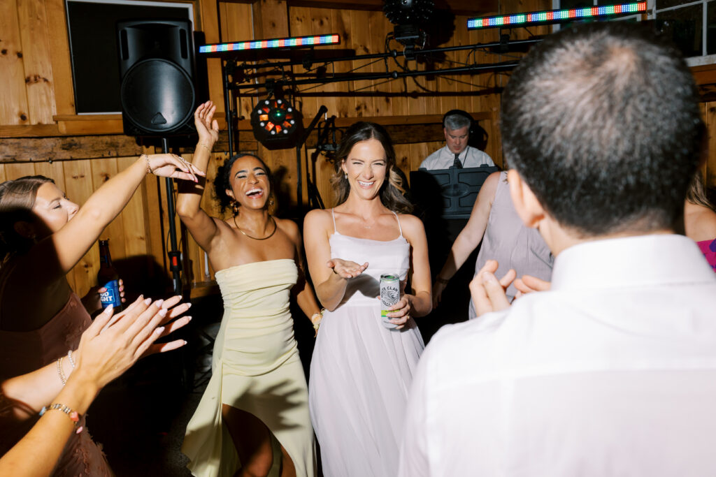 After dinner, the reception moved inside the barn while the patio and lawn remained open outside. Estate weddings naturally allow guests to move between spaces throughout the evening, which keeps the energy relaxed and comfortable.