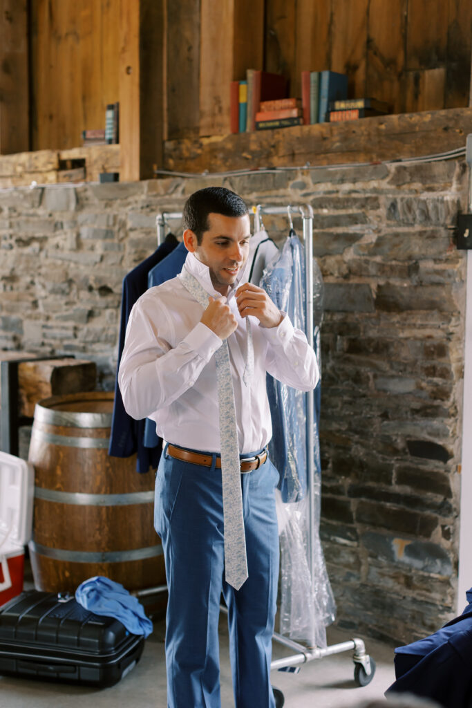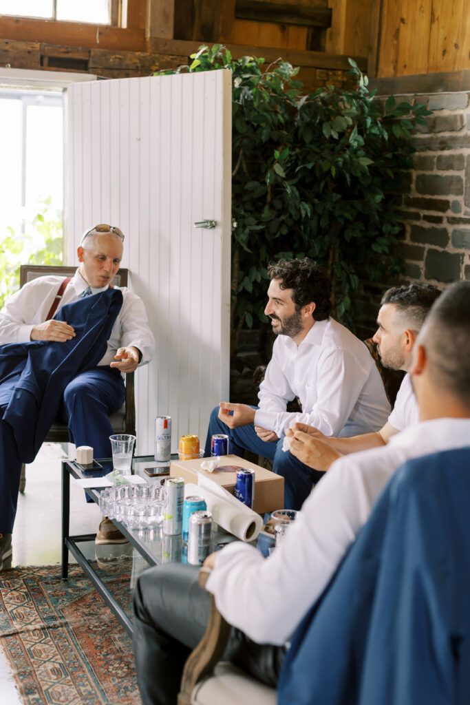 Meanwhile, Sean and his groomsmen spent the morning getting ready in the barn. The group kept things relaxed, sharing stories and helping each other with ties and jackets before the ceremony. Those early hours with close friends often end up becoming some of the most meaningful moments of the day.
