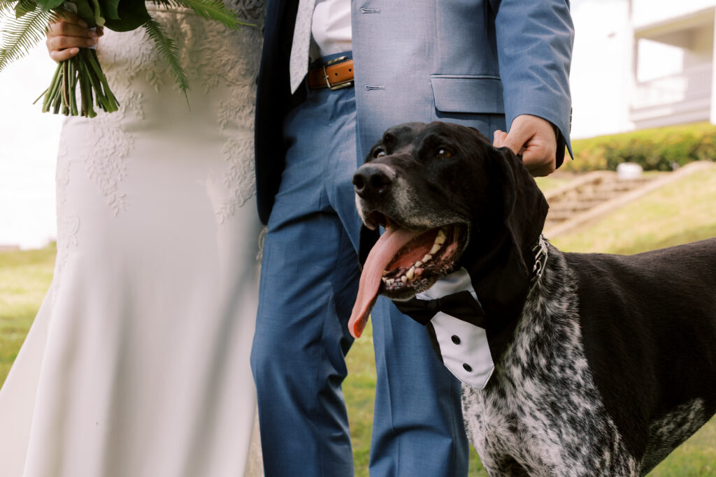 Their dog made another happy appearance during this moment, dressed in his own tiny suit and greeting Liz with plenty of excitement. After their first look, Liz and Sean stepped aside to exchange private vows. Sharing those words quietly gave them time to focus fully on each other before the ceremony began.